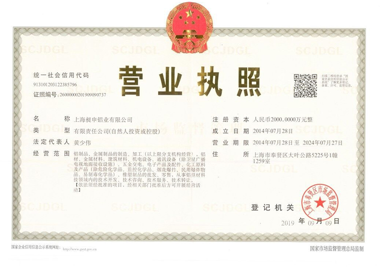 - 昶申鋁業(yè)營業(yè)執(zhí)照